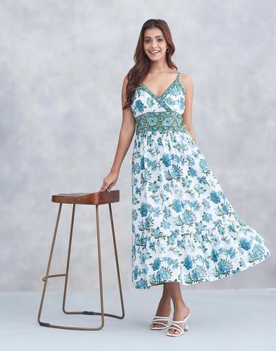 Women Floral Summer Midi Dress – Blue